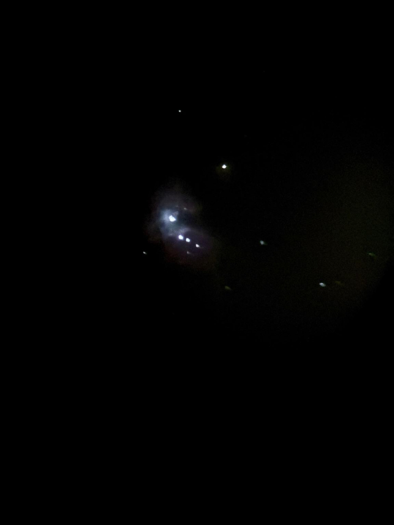 Anschließend arbeiteten wir mit Feldstechern, die wir auch auf Stativenbefestigen konnten. Nach einer kurzen Einführung konnten wir dieseselbstständig benutzen, verschiedene Himmelsobjekte beobachten und sogar Fotos wie zum Beispiel von den Plejaden, einer Ansammlung junger Sterne, aufnehmen. Zusätzlich hatte Frau Thiering unser Schulteleskop aufgebaut, welcheswir ebenfalls selbst bedienen durften. Dazu wurde uns erst erklärt, wie das Teleskop funktioniert und wie man es auf die Himmelsobjektenachführt, um die Erddrehung auszugleichen. Danach konnten wir selbst Beobachtungen durchführen, unter anderem von dem Planeten Jupiter, auf dem zwei dunkle, Planeten-umspannende Bänder zu erkennen waren,und seinen vier wie auf einer Perlenkette aufgereihten, großenGalileischen Monden. Für viele ein besonderes Highlight war derweißlich schimmerde Orionnebel, in welchen dunklere Strukturen hineinreichten und in dessen Zentrum man vier ganz nah beienander stehende, wie kleine Diamanten funkelnde Sternchen, das sog. Orion-Trapez, betrachten konnte.