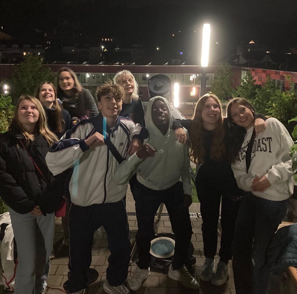 Frau Thiering gab uns die große Gelegenheit, die Andromedagalaxie und Saturn durch das Fernrohr der Schule zu beobachten. Die guten Sichtbedingungen dieses Abends ermöglichten es sogar, dass wir die schwächer leuchtenden Außenbereiche der Andromeda Galaxie, die sich noch weit über das Sichtfeld des Fernrohr-Okulars hinaus erstreckten, sehen konnten .Auch die Ringstruktur von Saturn war deutlich zu erkennen.